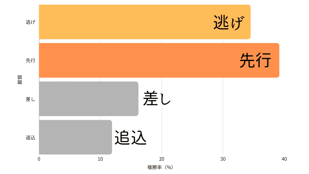 ・先行馬の成績がかなり高い → 追込馬は苦戦気味にある