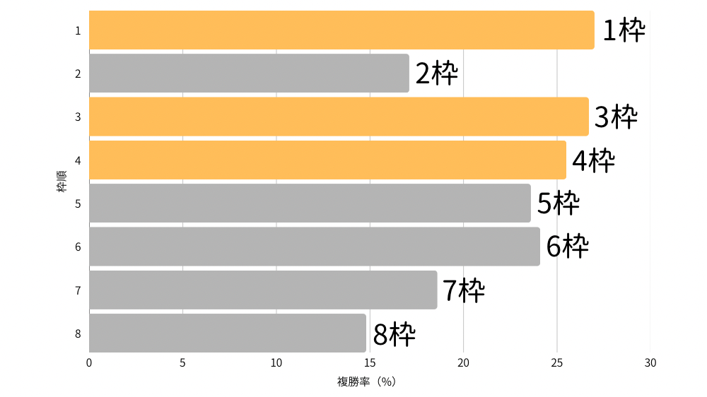 ・1枠~4枠の成績が高く、外枠はやや不利の傾向にある