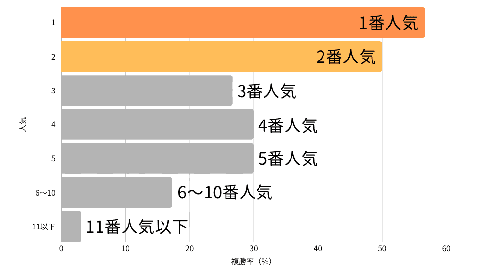 ・1番人気馬の信頼度はやや高く、2桁人気馬の激走も比較的多い