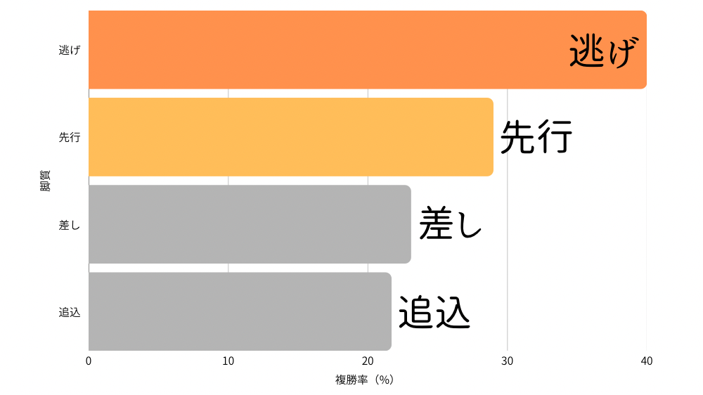 ・脚質による優位差は少ないが、逃げ馬の成績が頭一つ抜けている