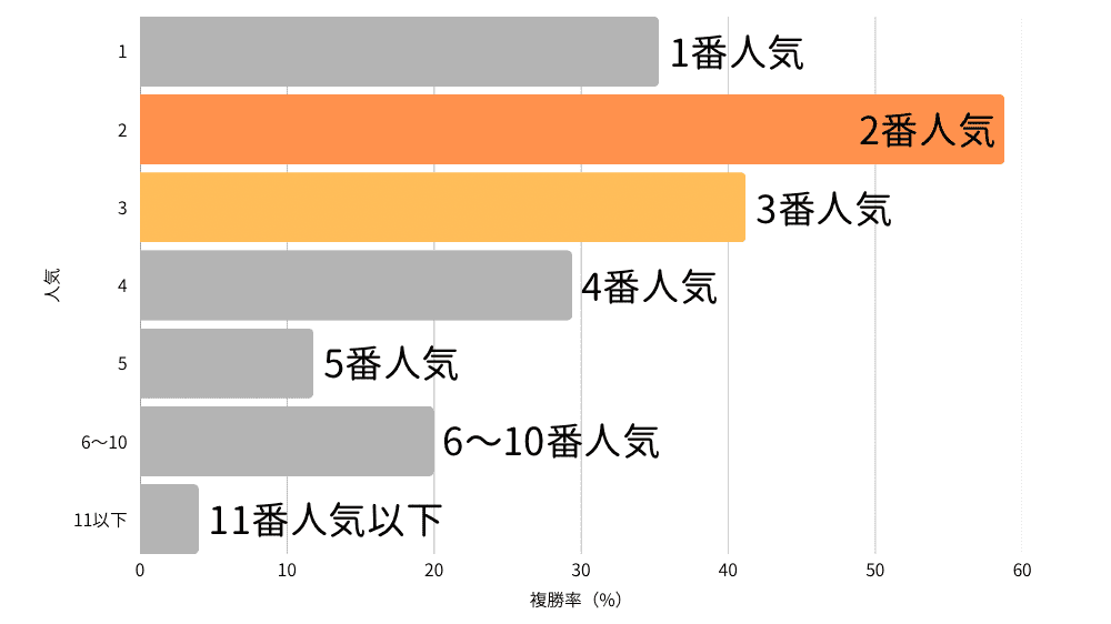 ・1番人気馬の信頼度は低く、2番人気馬の方が信頼度は高い