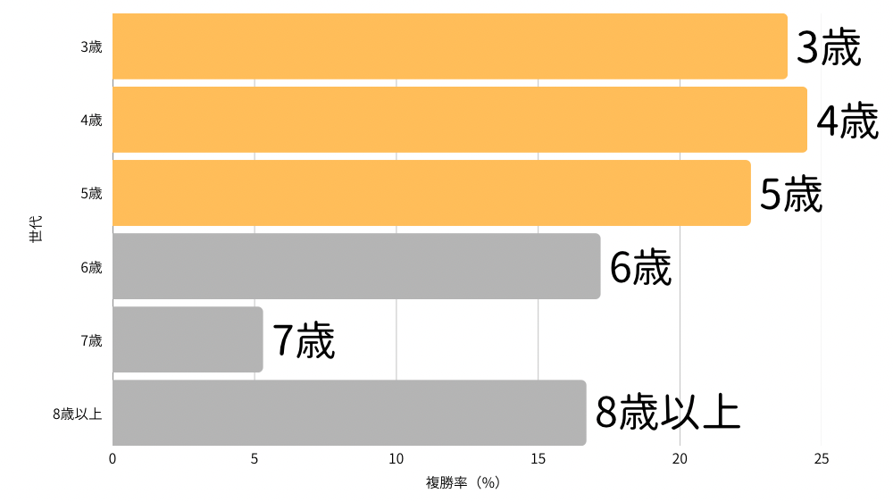 ・3~5歳馬の成績が横並びで、8歳馬以上の馬も比較的成績は良い