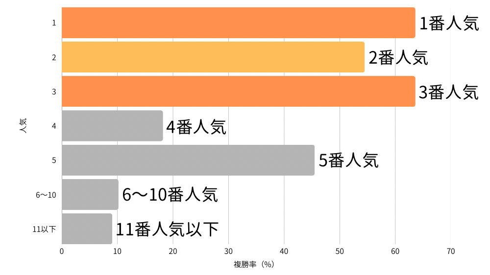 ・1~3番人気馬の信頼度は高く、11番人気以下の激走は少ない傾向にある