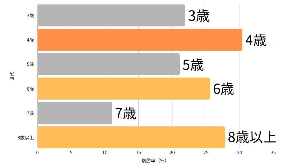 ・4歳馬の成績が良い、8歳馬以上の複勝率もやや高め